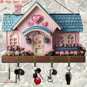 Portachiavi multifunzionale in legno 2D piatto, design COTTAGE, dimensioni di circa 30x23 cm, con quattro ganci metallici. Decorazione per qualsiasi parete a casa o ufficio grazie ai colori brillanti.