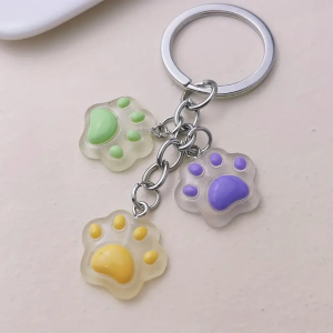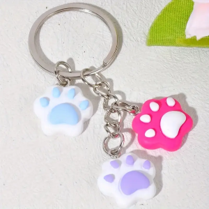 Portachiavi in acrilico con 3 ciondoli a zampina. E' disponibile in vari colori non selezionabili, verrà inviato in base alla disponibilità di magazzino.