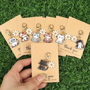 Portachiavi in lega a forma di gatto e margheritePortachiavi in lega a forma di gatto e margherite
