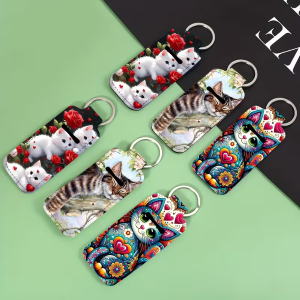 Portachiavi in tessuto e gomma e porta lipstick. E' disponibile in vari disegni e colori non selezionabili, verrà inviato in base alla disponibilità di magazzino.